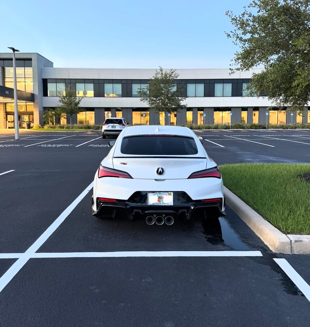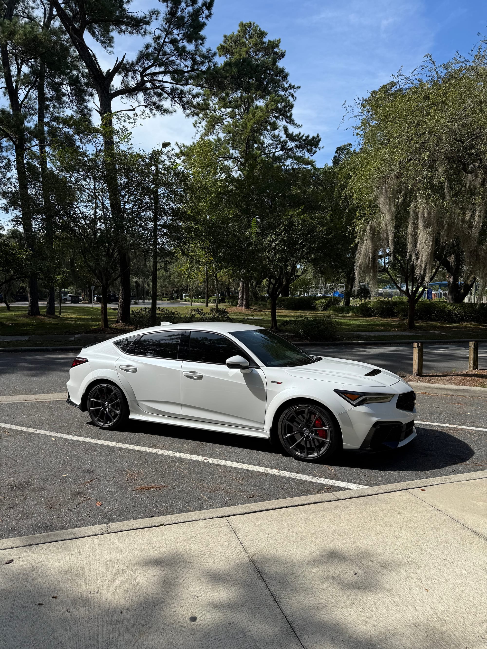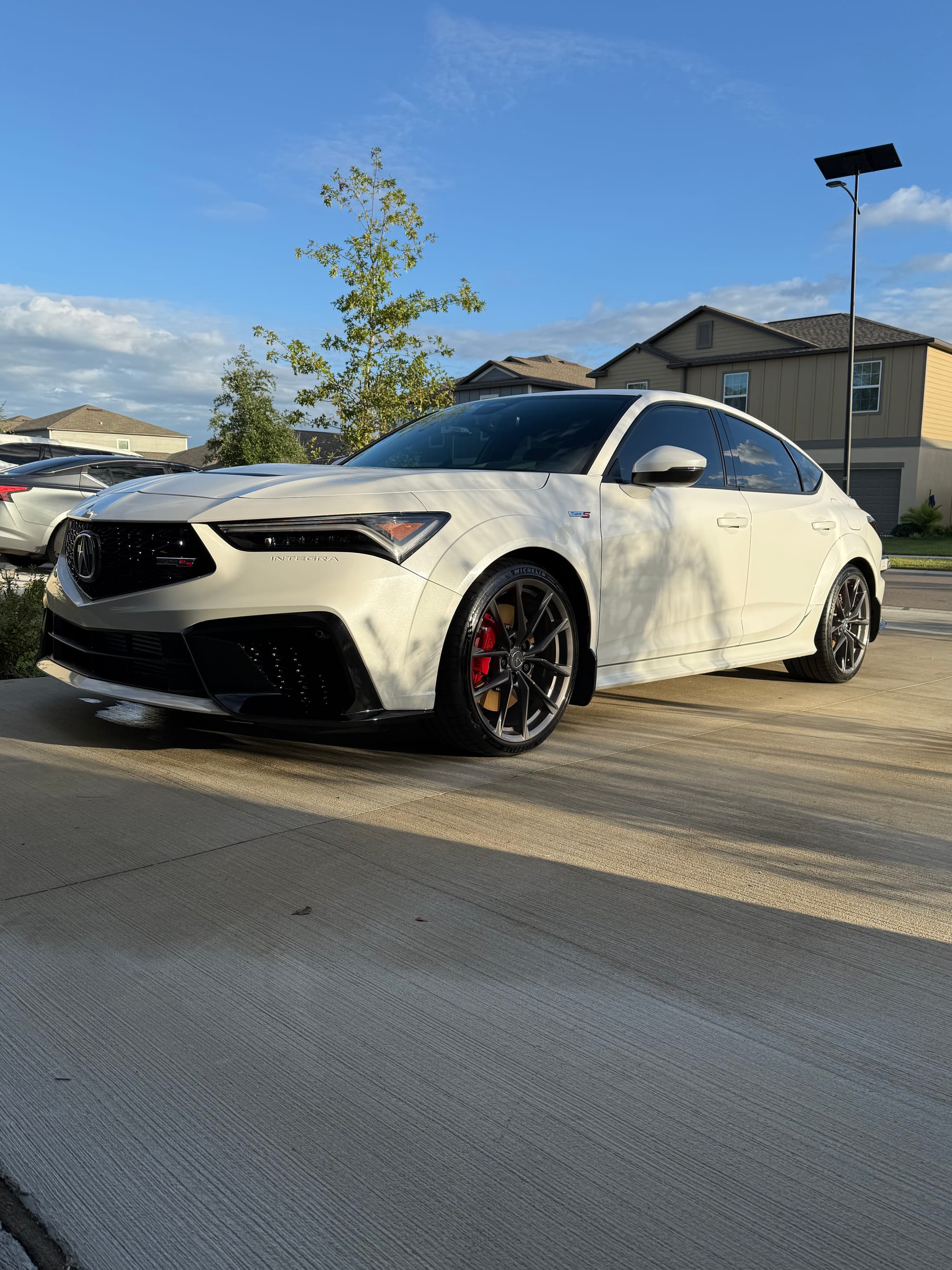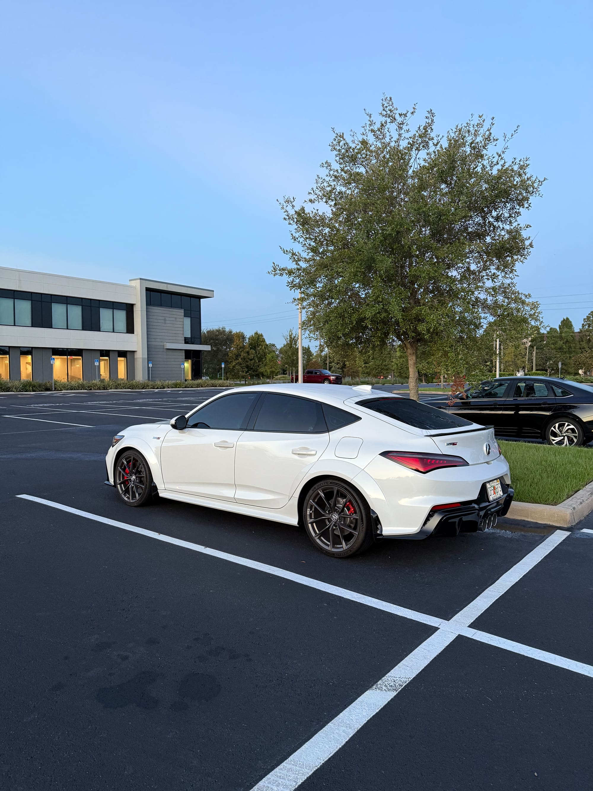 -This car is absolutely gorgeous. In todays age where cars are looking uglier, blockier, and less elegant the Type S breaks the mold. The curb appeal is amazing, the stance of the car with the widebody from the factory is second to none. There are front brake ducts hidden in the front bumper. There is canards hidden in the front side bumper panels for added stability when taking corners at speed. The hood vent actually lets heat out and is placed right near the turbo. Brembo brakes with "Acura" written on them in red matches the interior perfectly and adds to the racecar look without being childish. The front and rear have LED lights with the front being Jewl LEDs (idk what that really means but damn they are nice). The driving lights add to the mean front end and the black and white contrast seen from the front bumper to the back diffuser is properly thought out. Speaking of which, the back diffuser has massive fins and the cutout for the sizable triple outlet exhaust with exhaust valves. There is also a spoiler in black on the rear decklid and shark-fin antenna on the rear middle of the roof. My car has the dealer installed mudguards in black, which I think amplifies the stance and limits rock chips in addition to tinted windows, which only supports the black and white contrast. The rocker panels are also specific to the Type S as they have more curves than the base Integra. Also notable is how many places the Type S is written over the car. There is a badge in the front grill, on the rear bumper, on the front quarter panels, inside the car on the steering wheel, shifter plate trim, seat headrests, and front door sills. The wheels are lightweight and 265/30ZR19 fitted with Michelin Pilot Sport 4S summer sticky tires. This combo just adds to the "racecar" look and stance and almost gives the appearance that its lowered without actually being lowered.